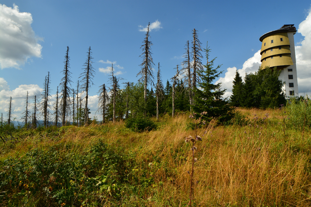 Vrchol s vyhlídkovou věží je též nazýván Polední hora a